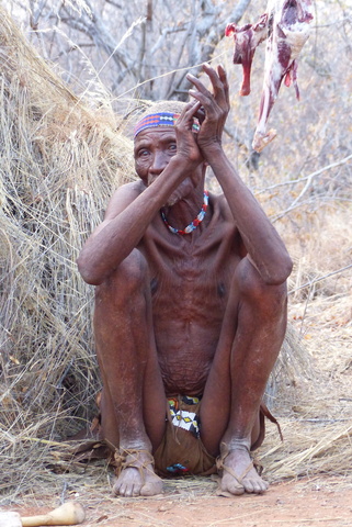 The bushmen sit in a semi circle facing us, as the elder begins his story in their expressive click language. He tells of going off on a hunt with his friend, when they come upon the fresh carcass of a kudu. Little did they know there was a lion nearby.